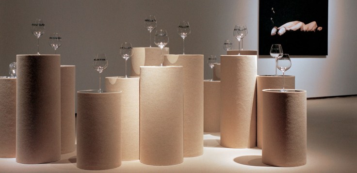 Esta pieza está compuesta por 14 copas de un tamaño mayor de lo habitual. Cada una de estas copas se muestra sobre una peana cilíndrica forrada con una moqueta clara. En 13 de las piezas, la artista serigrafía la superficie de cristal con frases que se disponen de forma circular, obligando al espectador a hacer el mismo recorrido para encontrar el sentido de cada texto impreso, que no llegará a leer en su totalidad por la propia disposición de las peanas.