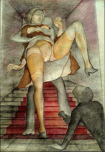 Pinta y dibuja con lápices de colores sobre papeles de gran dimensión las mismas escenas que describe en su trilogía «La Revocación del Edicto de Nantes» (1959), «Roberte, esta noche» (1954) y «Le Souffleur ou le théâtre de société» (1960). Representa en imágenes y esculturas lo que denomina «las leyes de la hospitalidad», el préstamo (sexual) de la esposa por parte del anfitrión-marido a los amigos y desconocidos que visitan la casa. Es la mirada como goce sexual y estético.