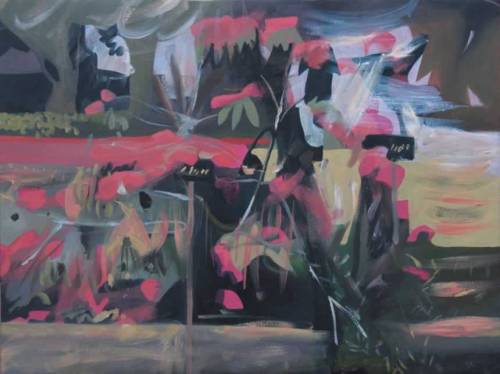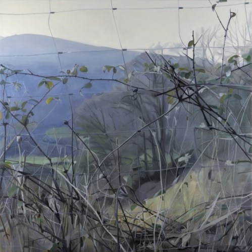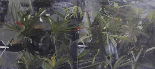 Construyes en tus cuadros redes de pintura y vegetales enredados que ordenan el caos sin caer en formulaciones, ni formulismos. Abordas el trabajo de la pintura con la certidumbre del potencial fracaso, aceptando como horizonte la falta de sentido e introduciendo en el proceso de trabajo la destrucción de lo realizado. En ocasiones ocultas las múltiples capas del cuadro y en otras destruyes lo que de imagen tiene una obra visual, para permitir que exista lo inesperado. Tus redes vegetales sostienen un primer plano que permiten un lugar desde el cual mirar y también agarrar la mirada del espectador. Entiendo que en este lugar entre el cuadro y el público empieza el clima de convivencia.