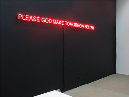 PLEASE GOD MAKE TOMORROW BETTER. Colectivo Claire Fontaine Please God Make Tomorrow Better, 2008. Conocer más sobre el colectivo Claire Fontaine Compartir: Haz clic para compartir en Facebook (Se abre en una ventana nueva) Facebook Haz clic para compartir en X (Se abre en una ventana nueva) X Haz clic para compartir en Pinterest (Se abre en una ventana nueva) Pinterest Haz clic para compartir en Tumblr (Se abre en una ventana nueva) Tumblr Haz clic para imprimir (Se abre en una ventana nueva) Imprimir Haz clic para enviar un enlace por correo electrónico a un amigo (Se abre en una ventana nueva) Correo electrónico Relacionado Deja un comentario Cancelar la respuesta Δ