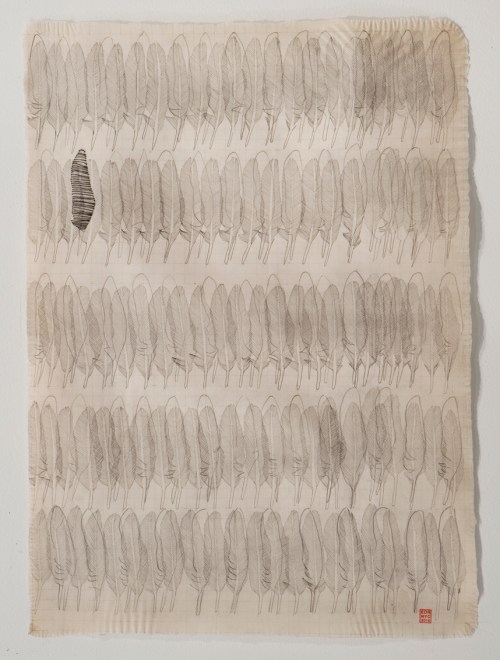 La artista habla sobre la libertad de utilizar el papel como material: “Empecé con el papel porque no tenía dinero y era mucho más barato. El papel tiene algo muy directo, es como el lenguaje del cuerpo. Como dijo Richard Serra: “El dibujo es otro tipo de lenguaje”. Tiene el encanto de la inmediatez y te ofrece cierta libertad, aunque ahora cuando pinto, de alguna forma recuerdo mi trabajo sobre papel, y también me siento muy libre.”