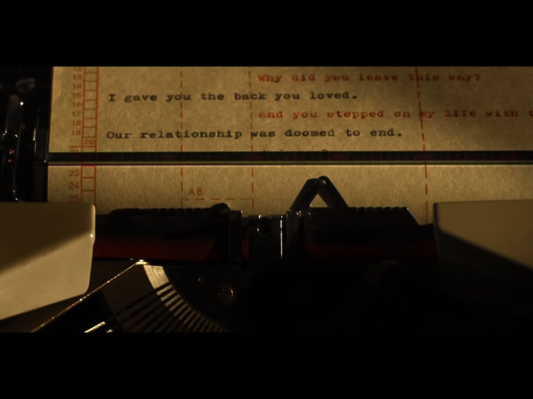 La historia es narrada únicamente a través de la palabra escrita; la imagen de los cuerpos está ausente. Todo lo relatado se transmite en el texto, en ningún momento existen los actores, ni se identifican los amantes, apenas sabemos de su pasado, ni del contexto, sólo sabemos que son dos hombres. El cuerpo físico está sugerido en la ausencia. La única imagen en movimiento de la película es el papel de la arcaica máquina de escribir moviéndose hacia arriba. El único sonido es el producido por la máquina de escribir, el sonido de escribir el recuerdo, la añoranza y el amor no correspondido. Una relación rota, una conversación tensa, un resultado incierto.