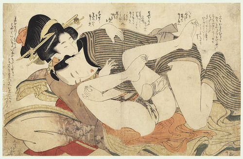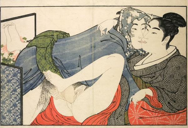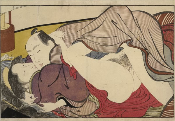 La mayoría de los shunga fueron publicados en forma de libro, a diferencia de las láminas sueltas que dominaban el mercado de ukiyo-e, lo que permitió que las imágenes se pudieran trasladar y almacenar discretamente. Este es el caso del famoso álbum de Utamaro, «Poema de la almohada » y de la obra de otros artistas como Hokusai, Harunobu, Kuniyoshi, Kyonobu, Sukenobu y Shuncho, de los que he seleccionado algunas imágenes. Constituye una de las cimas del arte erótico.