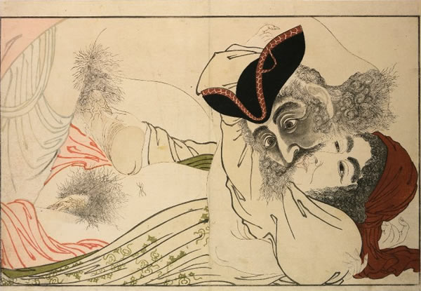 En el período Art Nouveau la popularidad de los grabados japoneses se extendió. La más famosa de las obras Shunga es la representación de una mujer joven que es violada por un pulpo perteneciente al álbum «Pining for Love» de Hokusai.