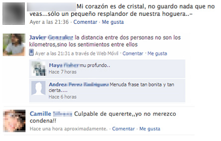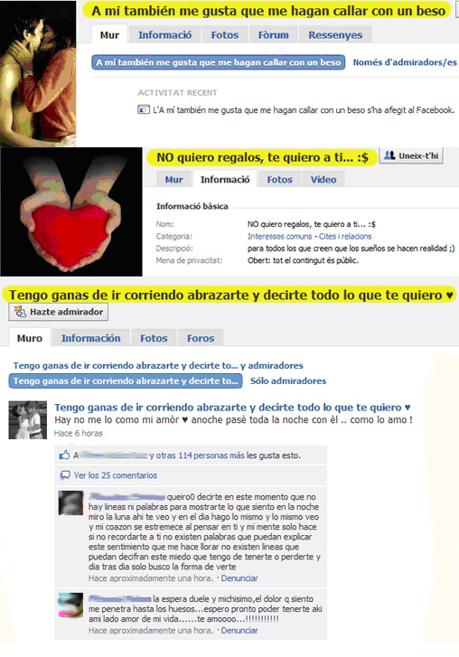 La revista El Jueves invitó a sus lectores a que enviaran lo que llamaron «Masters of Facebook«, conversaciones cursis, tópicas y «edulcoradas» en la red social Facebook. Aquí una muestra: