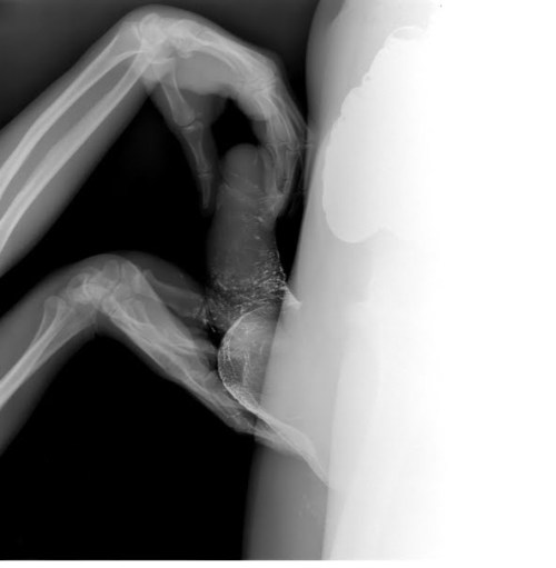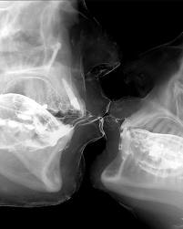 Podríamos evocar dos imágenes radiográficas de Wim Delvoye. Estas imágenes tomadas por rayos X, clasificables en la góndola de las imágenes X, poseen una fuerza de verdad extrema. Sin embargo, no donde uno cree, no donde uno ve. Al mostrar un beso o una felación, son para verlas, desde luego, como toda imagen, pero ellas muestran lo que no se ve a simple vista, el interior de los cuerpos en actividad. Ellas nos sitúan en un tiempo posterior al cine pornográfico. El valor del surgimiento del cine pornográfico, si ese valor existe, es en el fondo, haber mostrado algo, una parte de la anatomía que el cine jamás había mostrado, los órganos sexuales en actividad. Las imágenes de rayos X, al ir más allá de la anatomía, van más lejos: van al sexo bajo la piel. Por otra parte, si bien tales imágenes cumplen el sueño de la cámara pornográfica de mostrar desde lo más cerca posible, esto no produce exactamente una mayor excitación sexual. En verdad, las imágenes de Wim Delvoye tienden a mostrar una cosa que no se había visto nunca: cómo funciona el sexo. Sin embargo, debería decirse más bien que lo que estas imágenes muestran, es que no se lo ve. Más aún, que lo normal es que no se lo vea.