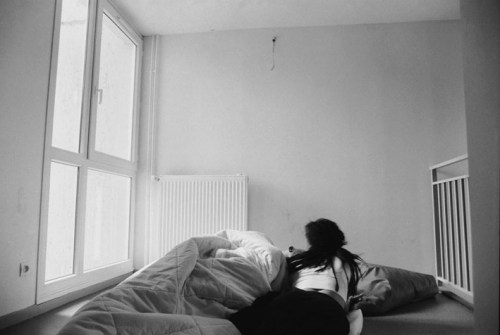 «Treinta y seis fotos de mi vida con Pierre, un maniquí masculino que alquilo durante un mes. Vivía sola en Villeneuve, un suburbio de la ciudad francesa de Grenoble durante tres meses como artista en residencia, y tuve miedo de los alrededores. […] La policía no entraba en nuestro barrio. Vi cosas que no podía explicar y adictos utilizaban mi puerta, como un inodoro. Me decidí a vivir con un maniquí. Permanecíamos en casa la mayor parte del tiempo y me hice fotos de mi misma para capturar los recuerdos de un momento único en mi vida.»