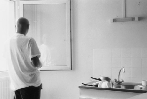 Cinema Solo, 1996, consta de 36 fotos documentales, realizadas durante el mes que Alicia Framis vivió con un maniquí en un gueto de Grenoble, Francia, como estrategia contra el miedo.