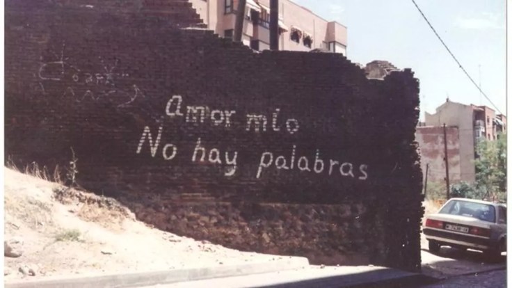 He encontrado esta bonita historia sobre una declaración de amor que apareció a principios de los noventa en un muro, entre las calles Pamplona y Francos Rodríguez del barrio madrileño de Tetuán. La pintada decía simplemente: «Amor mío, no hay palabras».