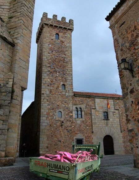 «Trashumano. Human Low Cost» es una obra realizada para Foro Sur que muestra diez maniquíes rosas atrapados en un camión. «Es la idea de mercancía humana, el bajo coste aplicado también a lo humano, lo ético y lo espiritual», explican los autores.