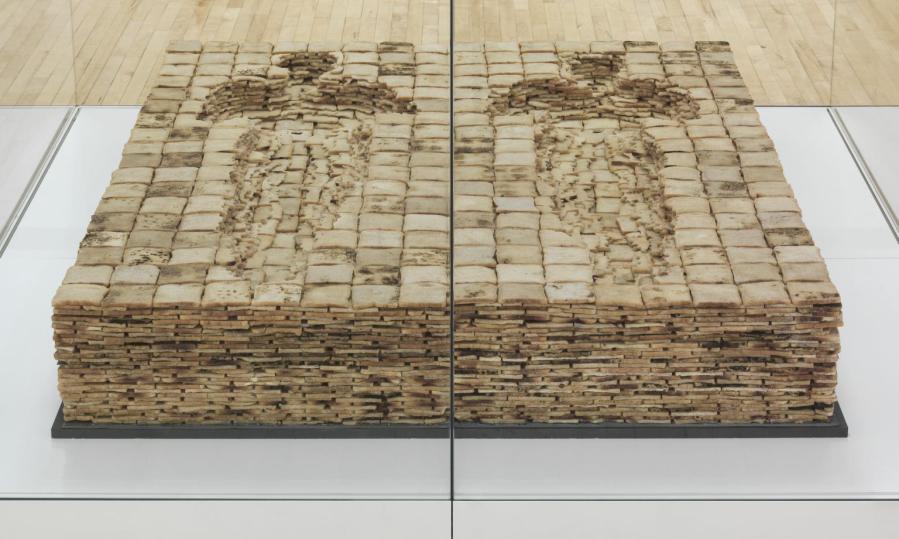 Con Bed (1980-81) retomó el tema de la cama como lugar para dormir. Para esta obra utilizó 8640 rebanadas de pan de molde Mother’s Pride, que secó y sumergió en cera de parafina. Las apiló en capas, creando una representación doble y especular de su cuerpo tendido, delineado por los huecos dejados al comer partes del pan. Gormley, quien recibió una estricta educación católica, relaciona esta obra con el ritual de consumir el cuerpo de Cristo. El volumen corporal del artista queda representado por este espacio vacío rodeado de pan, sugiriendo la transformación de la materia en espíritu. La figura ausente adopta la postura de los yacentes medievales, mientras que el moho en el pan simboliza el ciclo vida-muerte-vida. La cama, espacio tradicional de concepción, nacimiento y muerte, se convierte así en un lugar para los procesos transformadores de la existencia.