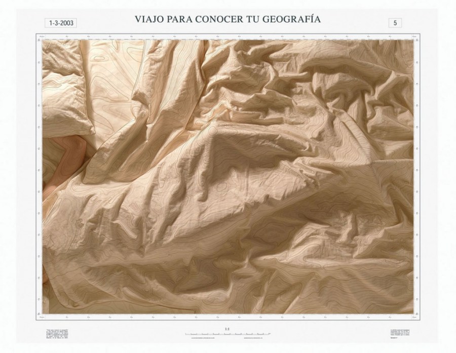 En palabras del propio artista: «El espacio real de la cama como territorio delimitado a través de fotografías cenitales de una cama deshecha que es tratada como un espacio geográfico y convertida en un plano cartográfico que transforma las sábanas en la orografía de un inmenso territorio habitado por uno mismo».