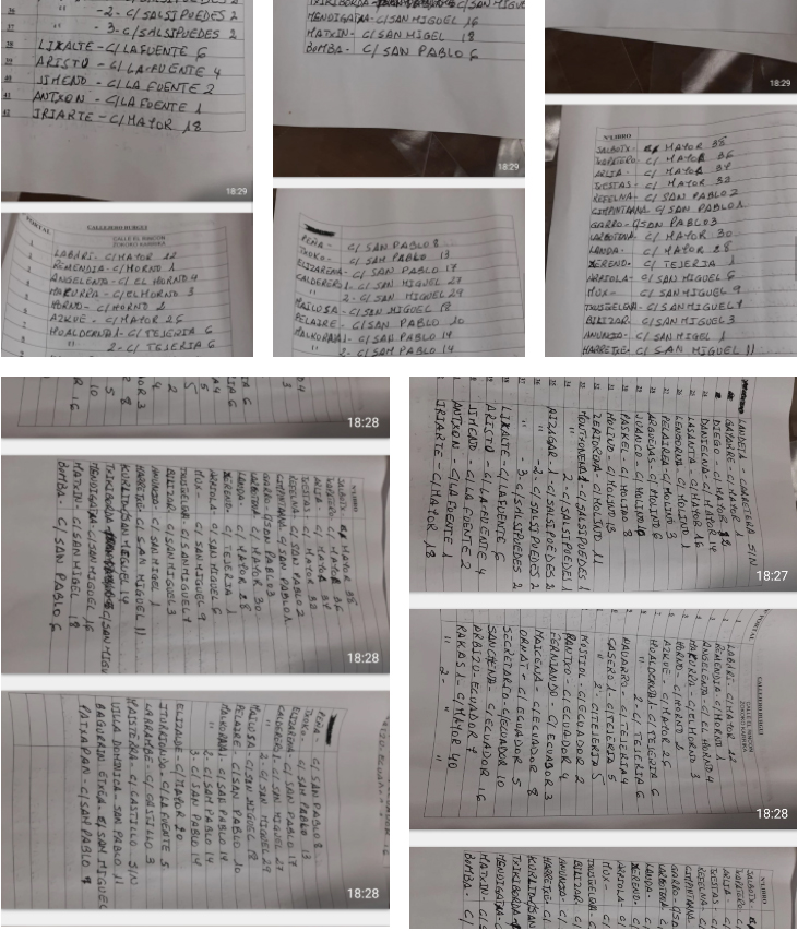 Recibo por wasap la lista de todas las direcciones de los vecinxs de Vidángoz, para el envío de las tarjetas postales.