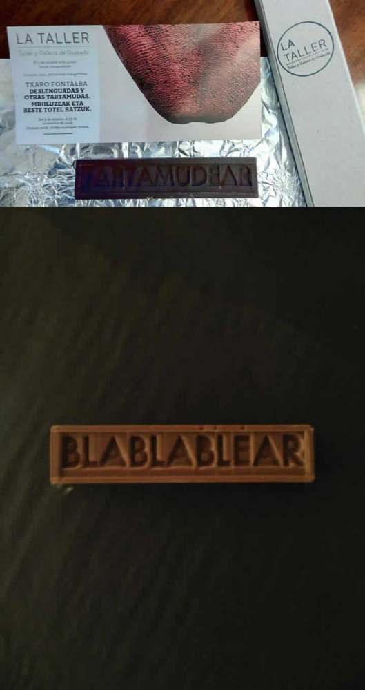 Como parte de la exposición “DESLENGUADAS Y OTRAS TARTAMUDAS”, he realizado una pequeña edición de piezas en chocolate a partir de moldes de tipos de imprenta de plomo.