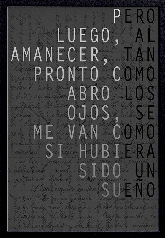 Para el proyecto «Las cartas de Mendigatxa» tomo como punto de partida uno de los pensamientos expresados un pequeño fragmento de papel, un texto incompleto, conservado por el lingüista Piarres Broussain y que me resulta particularmente evocador: